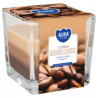 Aura Świeca parafinowa zapachowa Kawa w szkle trójkolorowa 2 knoty 32 h