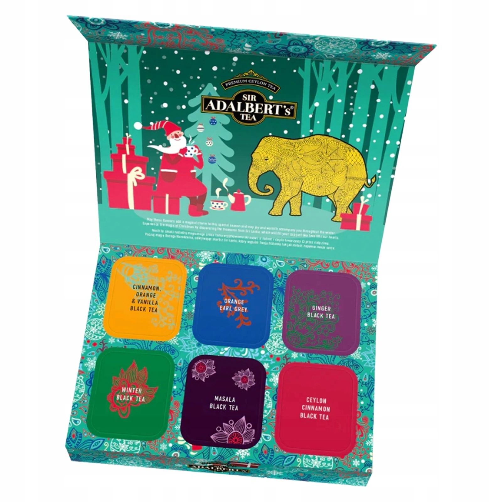 Adalbert’s Winter Collection to elegancka bombonierka prezentowa, w której znajduje się aż 48 saszetek herbat w sześciu wyjątkowych smakach. To propozycja stworzona z myślą o zimowych wieczorach i świątecznej atmosferze, gdzie kubek gorącej herbaty staje się symbolem ciepła i rodzinnych chwil. Zestaw łączy klasyczne czarne herbaty cejlońskie z aromatycznymi nutami cynamonu, pomarańczy, imbiru, wanilii i przypraw korzennych. Każda saszetka to starannie dobrana kompozycja, która pobudza zmysły i tworzy niepowtarzalny nastrój. To idealny prezent dla miłośników herbaty i doskonały sposób, by podkreślić wyjątkowy klimat zimy i świąt.