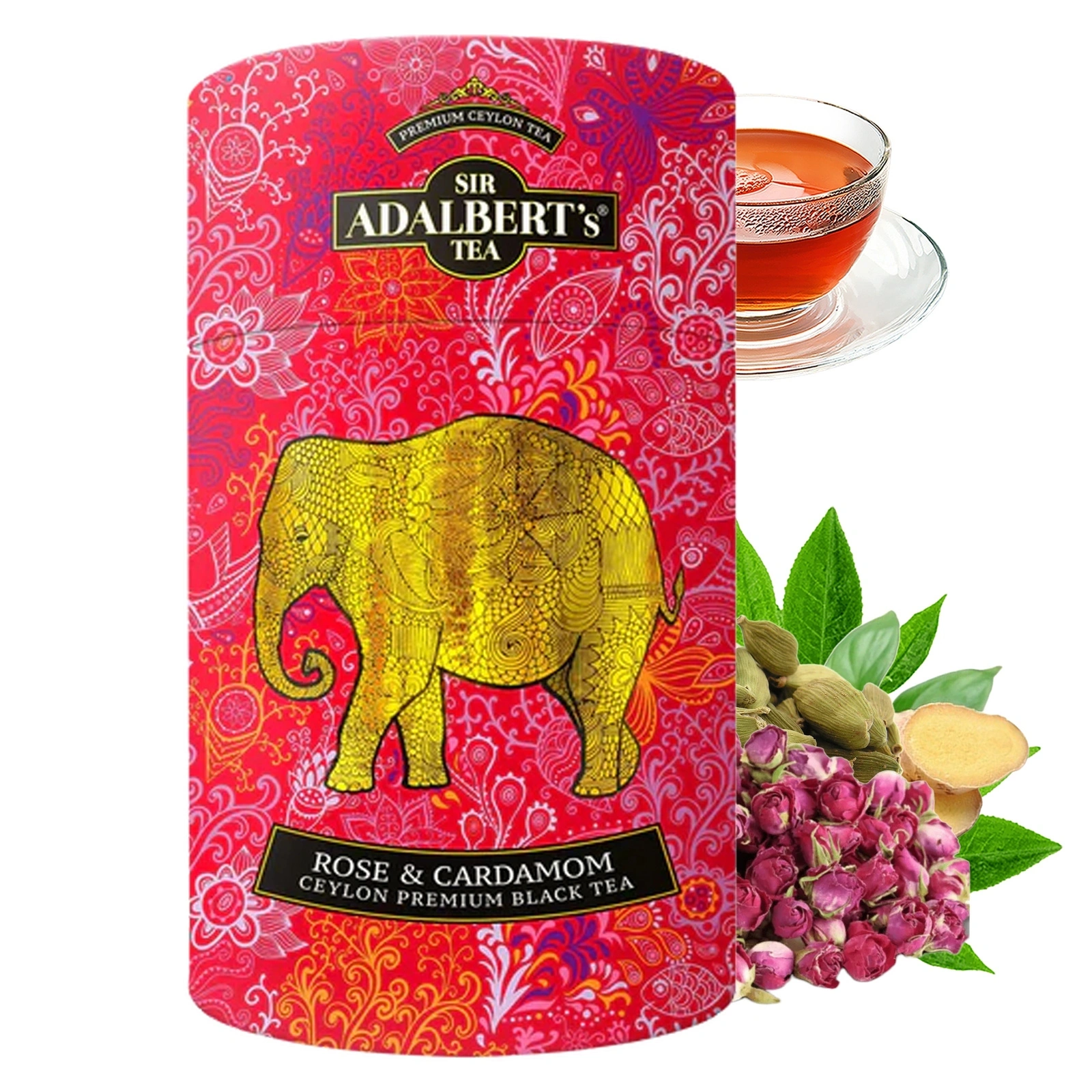 Adalbert's Rose & Cardamom to czarna herbata cejlońska klasy premium, wzbogacona nutami róży i kardamonu. Aromatyczna baza z liści OP1 tworzy głęboki, intensywny napar, który znakomicie łączy się z kwiatowym i korzennym charakterem dodatków. To propozycja dla osób poszukujących czegoś więcej niż klasycznego smaku herbaty – dla tych, którzy cenią wyjątkowe doznania.
