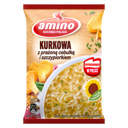 AMINO Zupa Kurkowa po Podlasku to wyjątkowa propozycja inspirowana regionalną kuchnią Podlasia. Połączenie aromatycznych przypraw, warzyw i suszonych kurek tworzy zupę, która nie tylko rozgrzewa, ale i dostarcza niezwykłych wrażeń smakowych. Dzięki szybkiemu przygotowaniu jest idealna dla osób, które cenią sobie wygodę, ale nie chcą rezygnować z dobrego smaku.