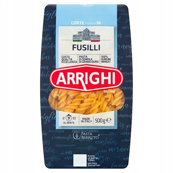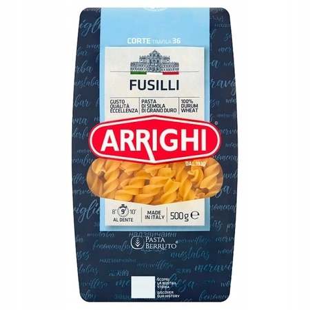 Marka Arrighi od pokoleń dostarcza makarony, które są symbolem najwyższej jakości i smaku. Dzięki starannej selekcji pszenicy durum i zachowaniu tradycyjnych metod produkcji, makaron Arrighi Fusilli zachowuje idealną sprężystość i strukturę po ugotowaniu, nie rozpada się i nie skleja, co sprawia, że każde danie wygląda i smakuje doskonale.