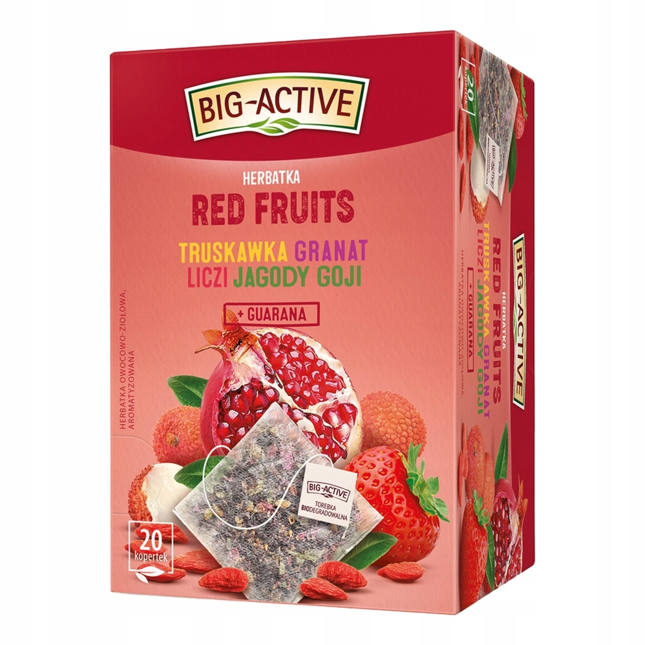 Big-Active herbatka owocowa Red Fruits truskawka, granat, liczi, jagody goji + guarana 20tb/45g