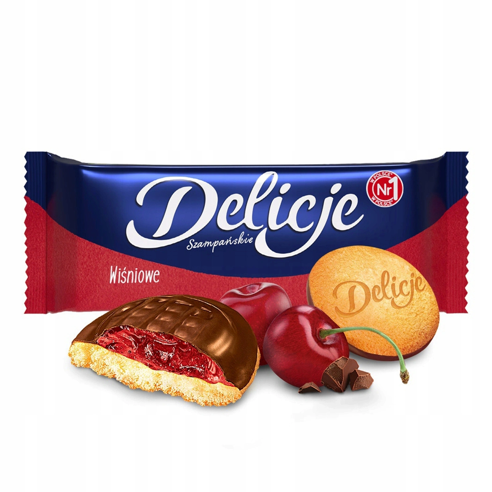 Delicje Szampańskie o smaku wiśniowym to jedne z najbardziej rozpoznawalnych ciastek na polskim rynku. Ich kultowa formuła niezmiennie zachwyca miłośników słodkości, oferując wyjątkowe połączenie puszystego biszkoptu, soczystej galaretki wiśniowej i aksamitnej czekolady deserowej.
