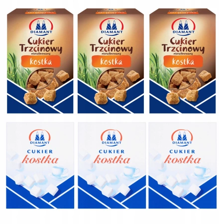 Diamant zestaw Cukier w kostkach Biały i Trzcinowy 6x500g