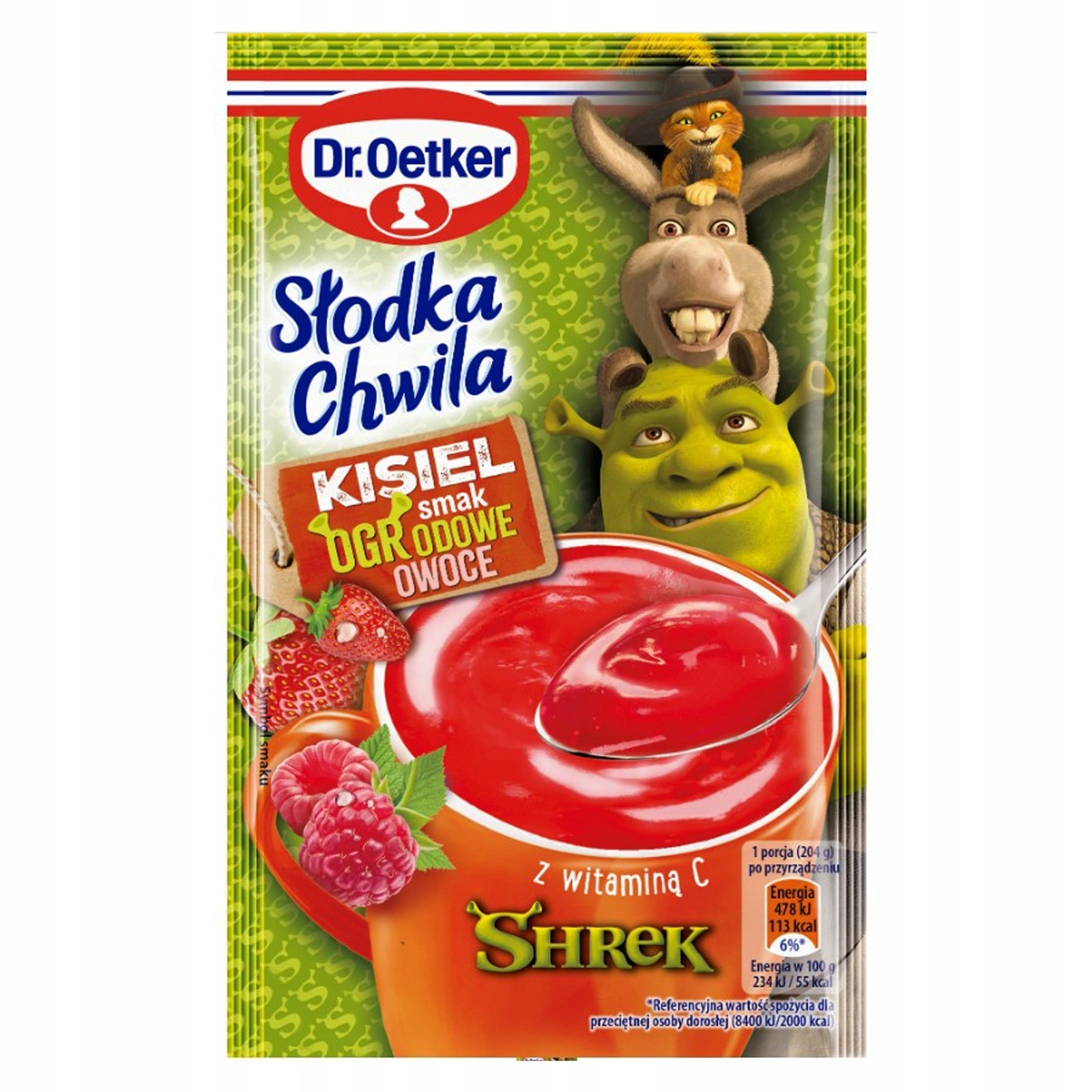 Dr. Oetker Słodka Chwila Kisiel o smaku Ogrodowych Owoców 29 g to szybki i smaczny deser, który przenosi wprost do letniego ogrodu pełnego truskawek i malin. To idealna propozycja dla każdego, kto szuka chwili przyjemności i owocowej świeżości – bez potrzeby długiego gotowania czy pieczenia.