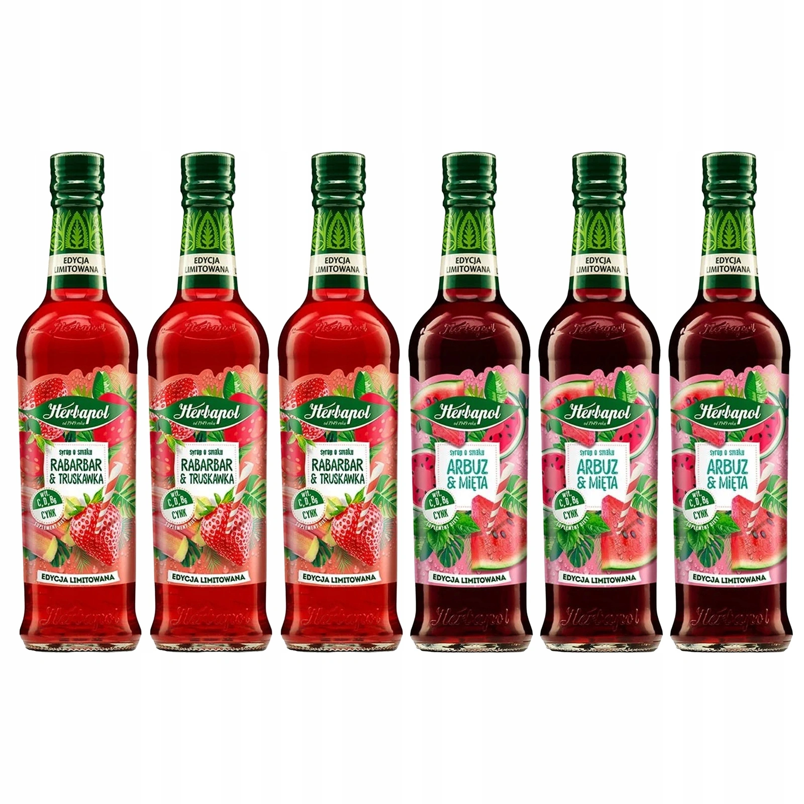 Herbapol Zestaw syropów owocowych 6x420ml - Rabarbar truskawka, Arbuz mięta