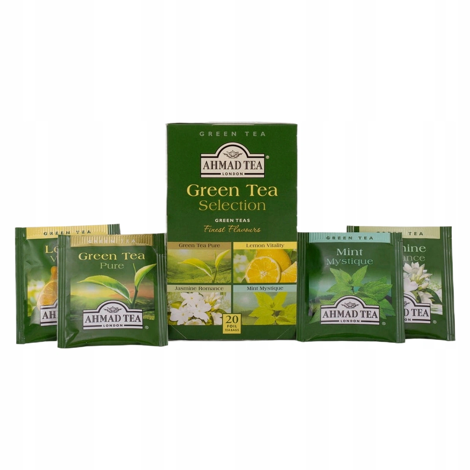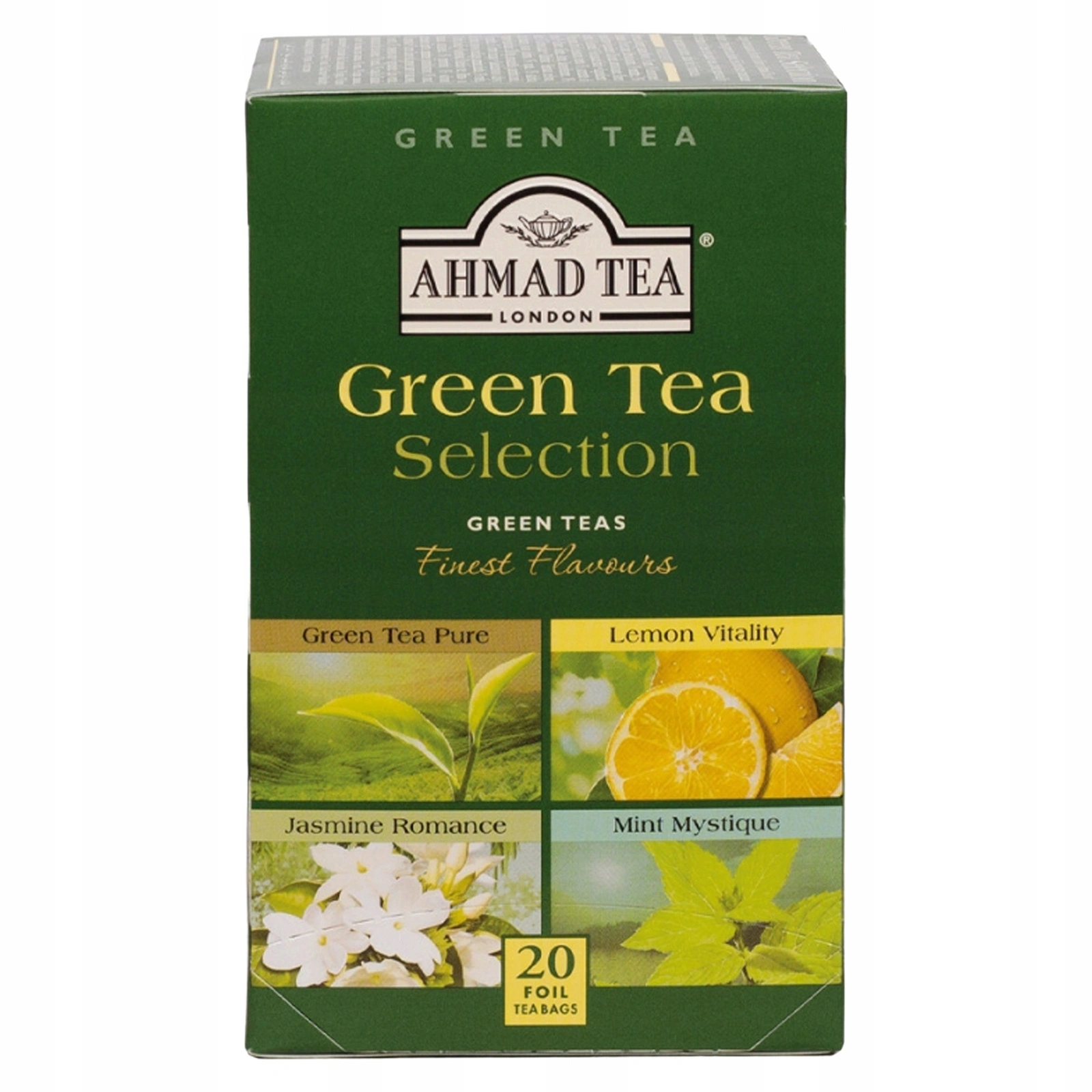 Ahmad Tea Green Tea Selection to wyjątkowa propozycja dla osób, które chcą odkrywać bogactwo i subtelność zielonej herbaty. W jednym opakowaniu znajdziesz aż cztery różne warianty, które umilą dzień od poranka aż po wieczorny relaks.