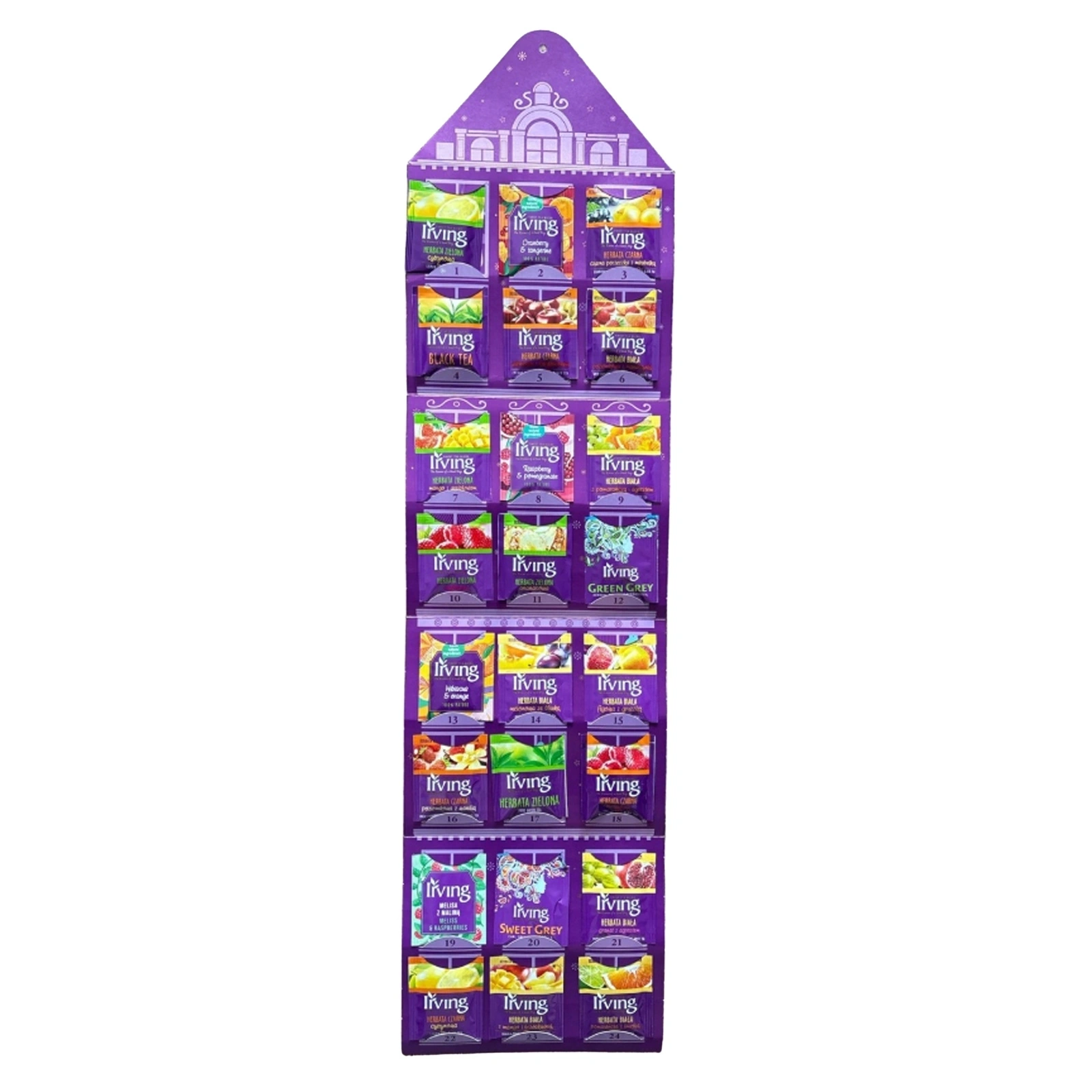 Kalendarz Irving to prawdziwa uczta smakowa, oferująca 24 różnorodne smaki, które rozgrzeją i umilą Ci każdy dzień grudnia. W skład zestawu wchodzą herbaty białe, zielone, czarne oraz owocowe, każda z unikalnym smakiem, który zapewnia przyjemność picia przez cały miesiąc. Każdego dnia możesz cieszyć się nowym smakiem, który będzie doskonałym wstępem do świątecznych przygotowań i codziennego relaksu.