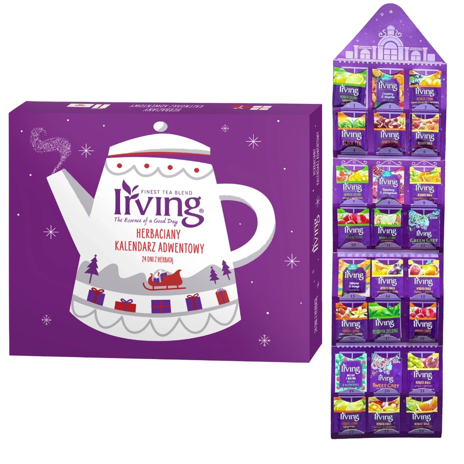 Irving Kalendarz Adwentowy to nie tylko doskonała herbata, ale także idealny pomysł na prezent. Eleganckie opakowanie w kształcie domku sprawia, że jest to świetny upominek, który można podarować bliskiej osobie na Święta. Dzięki różnorodnym smakowym propozycjom, kalendarz jest uniwersalnym prezentem, który trafi w gusta każdego miłośnika herbaty.
