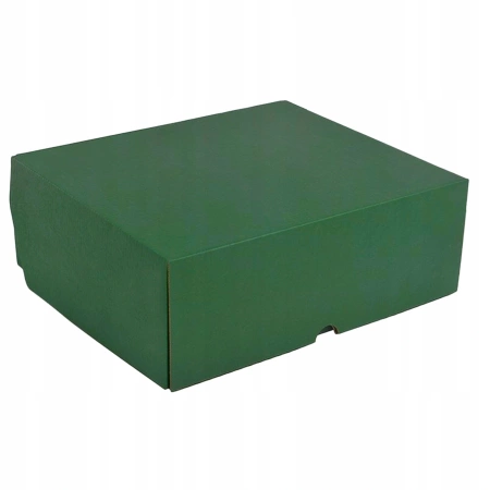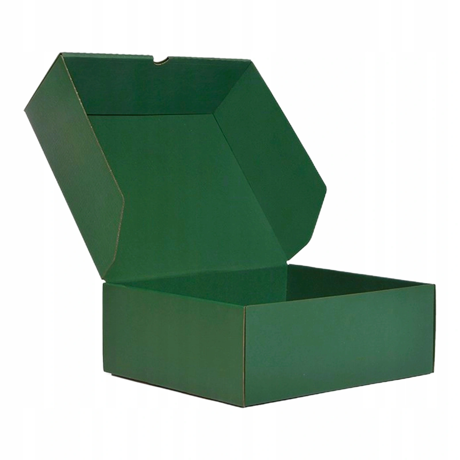 Karton wyróżnia się intensywnym, głębokim odcieniem zieleni, który pokrywa zarówno jego zewnętrzną, jak i wewnętrzną część. Dzięki temu pudełko prezentuje się niezwykle estetycznie, niezależnie od tego, czy zostanie pozostawione w prostej formie, czy ozdobione dodatkowymi elementami dekoracyjnymi. Taki kolor sprawia, że zapakowany prezent zyskuje elegancki i niepowtarzalny charakter, doskonale wpisując się w nowoczesne trendy pakowania.