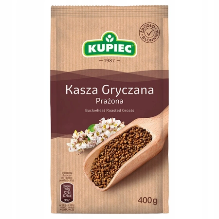 Kupiec Kasza Gryczana Prażona to produkt, który łączy naturalność z intensywnym, prażonym aromatem. Dzięki tradycyjnej metodzie obróbki termicznej ziarna gryki nabierają głębokiego smaku i aromatu, charakterystycznego dla kuchni słowiańskiej. To doskonała propozycja dla osób ceniących zdrową i wartościową dietę.