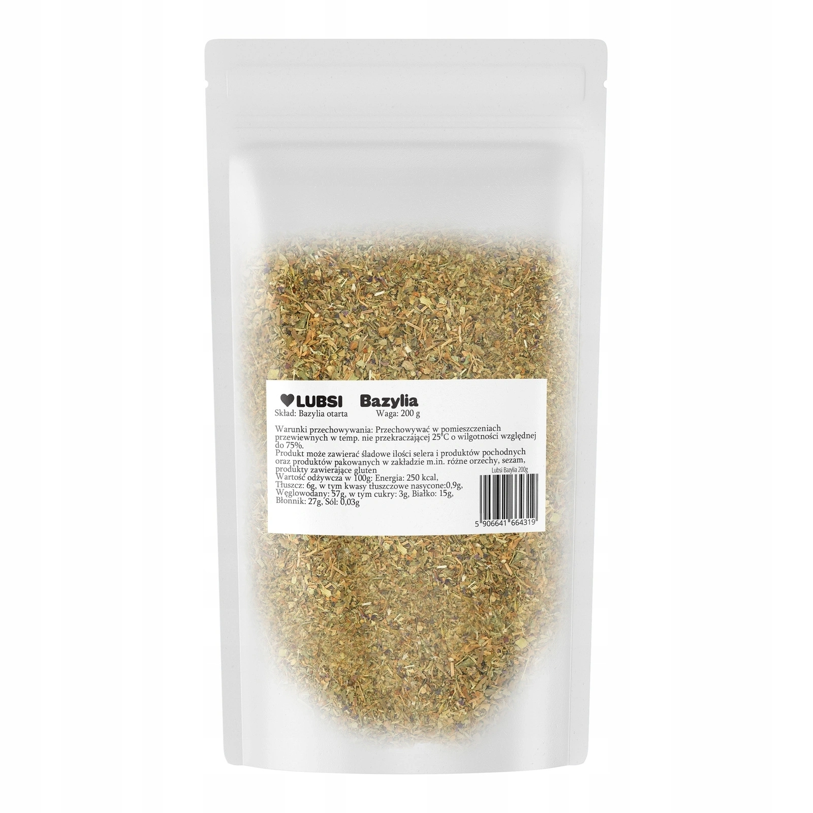 Bazylia LUBSI to czysty, naturalny produkt składający się wyłącznie z suszonych liści bazylii. Nie zawiera żadnych dodatków, sztucznych barwników ani konserwantów, dzięki czemu jest zdrowym wyborem w kuchni.