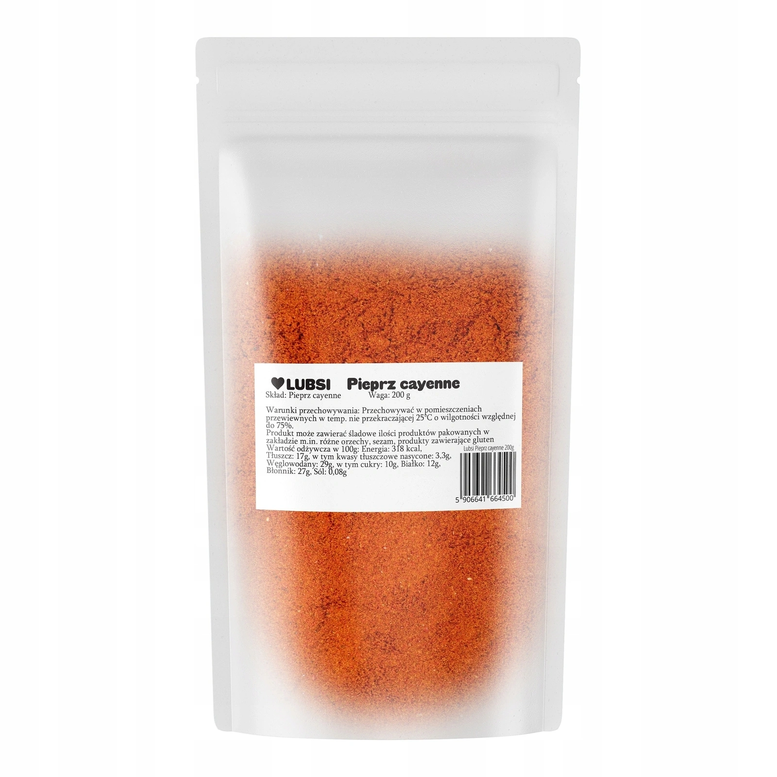 Pieprz cayenne LUBSI to 100% pieprz cayenne, bez sztucznych dodatków. Jest to produkt czysty, zdrowy i pełen wartości odżywczych, który w pełni zachowuje naturalne właściwości tej pikantnej przyprawy.