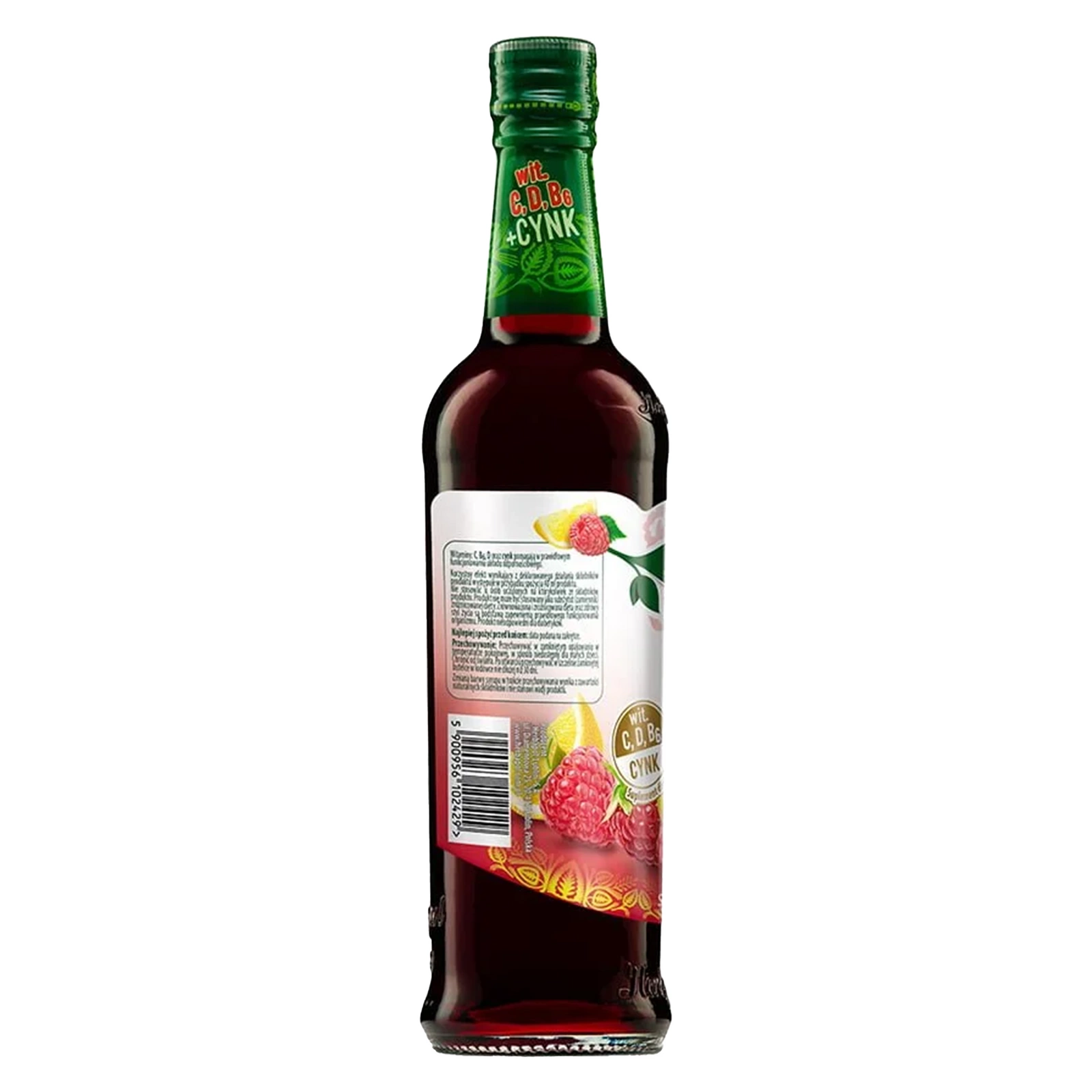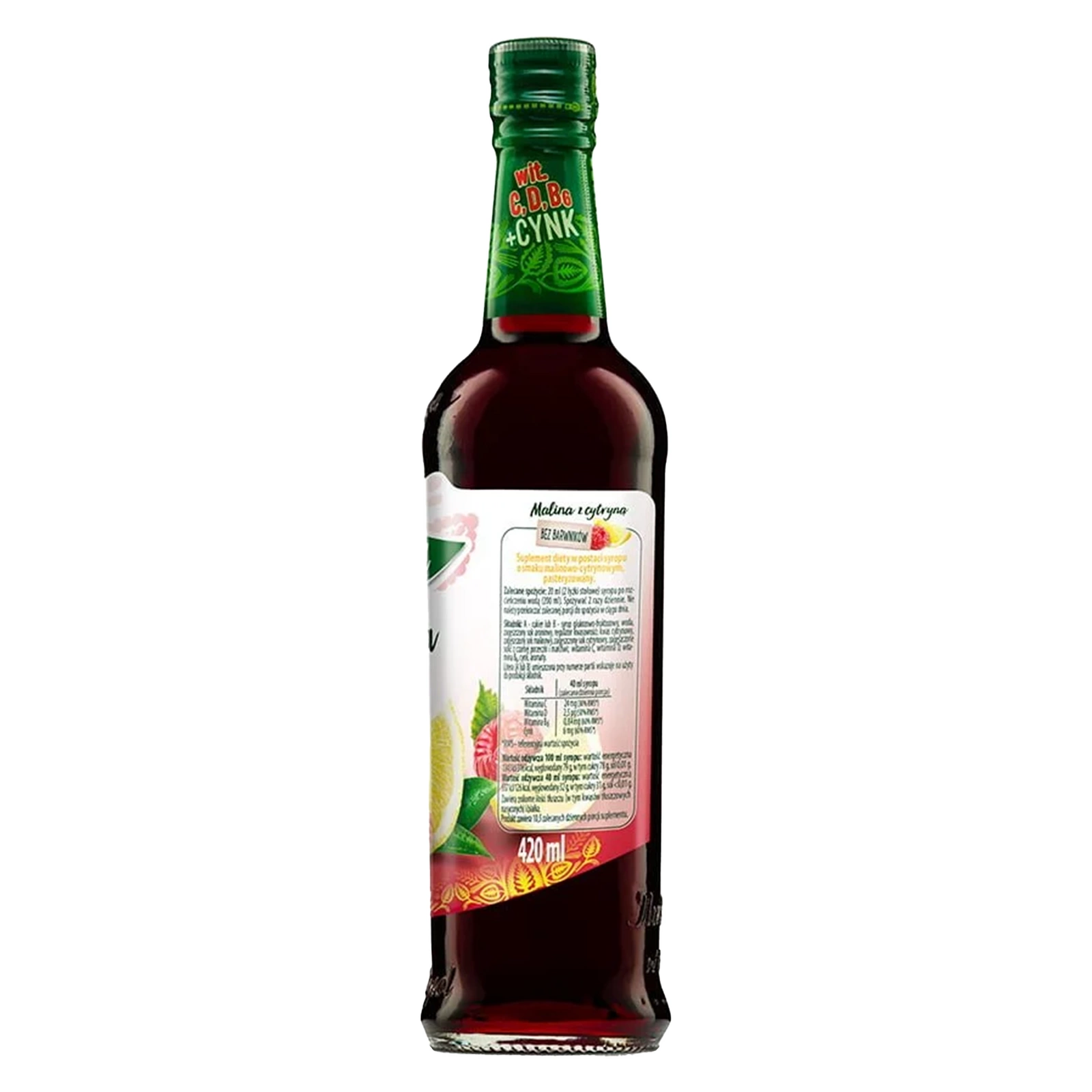 Maliny i cytryna są naturalnym źródłem przeciwutleniaczy, które wspierają młody wygląd skóry, poprawiają metabolizm i działają ochronnie na komórki organizmu. Dodatkowo syrop dostarcza takich składników jak cynk, witamina D i B6, wspierających prawidłowe funkcjonowanie układu nerwowego i odpornościowego.