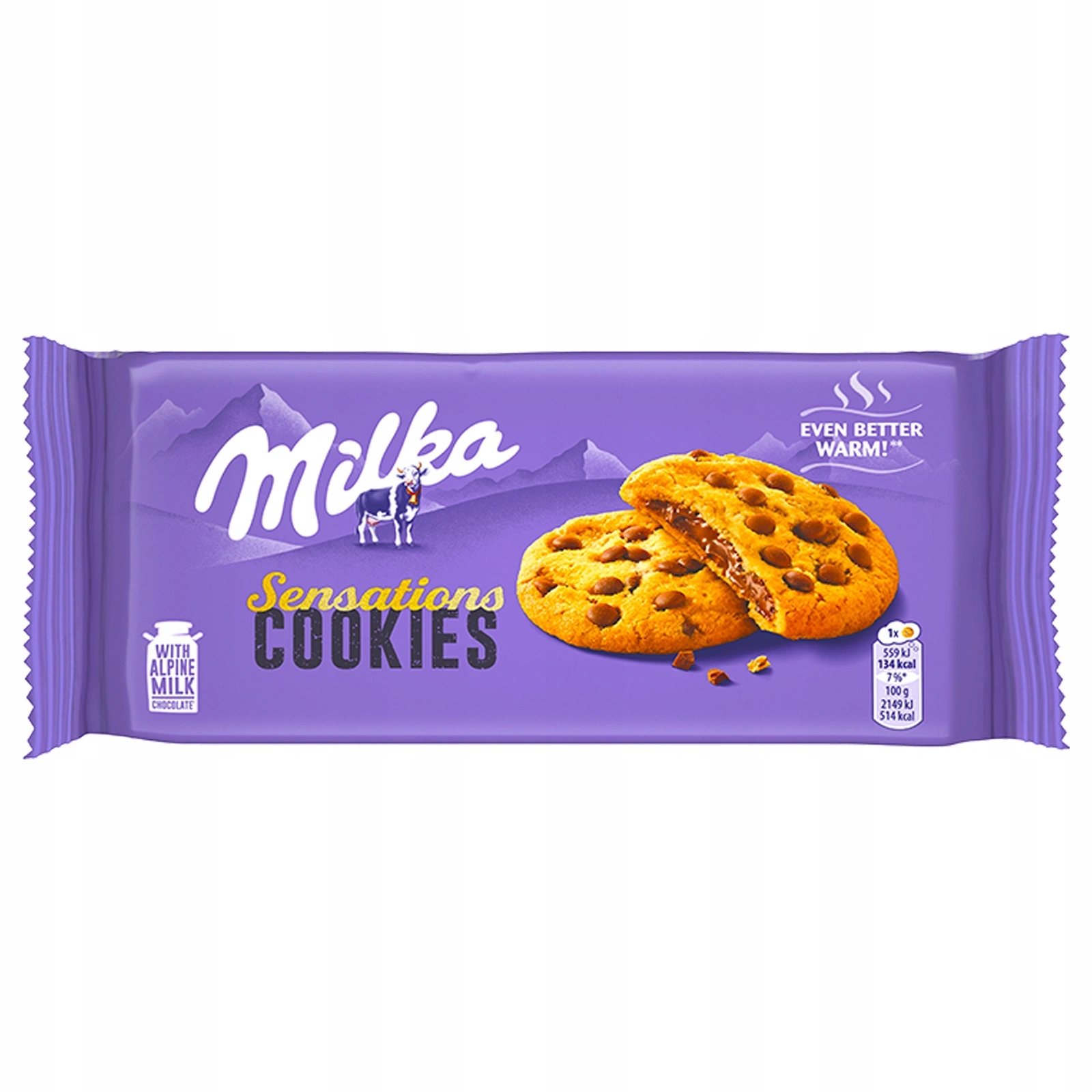 Milka Sensations Cookies to wyjątkowe połączenie delikatnego, lekko kruchego ciasta z miękkim, rozpływającym się w ustach czekoladowym nadzieniem. Każde ciastko to mała porcja szczęścia, która łączy intensywny smak oryginalnej mlecznej czekolady Milka z przyjemną teksturą domowego wypieku. To słodka przekąska, która idealnie sprawdzi się zarówno w przerwie od pracy, jak i podczas relaksu z filiżanką kawy czy herbaty.