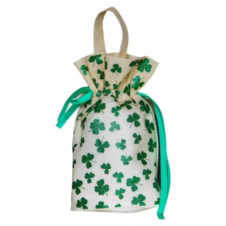 Motyw zielonych koniczynek dodaje woreczkowi lekkości i świeżości, wprowadzając element szczęścia i pozytywnej energii. Taki wzór sprawdzi się zarówno przy prezentach świątecznych, jak i przy okazji urodzin, imienin czy spotkań rodzinnych. Dzięki temu worek jest nie tylko praktycznym opakowaniem, ale także częścią samego upominku.