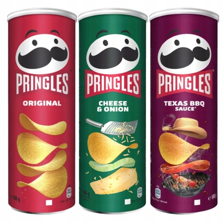 Pringles chipsy zestaw 3x165g - Cheese & Onion, BBQ, Original