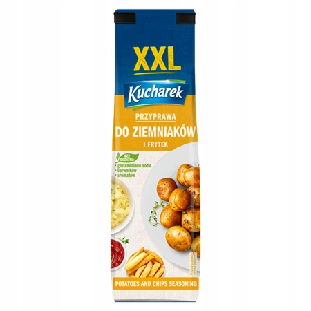 Przyprawa do Ziemniaków i Frytek Kucharek XXL 70 g to starannie skomponowana mieszanka, która wydobywa z ziemniaczanych dań pełnię smaku. Zioła i przyprawy dobrane w odpowiednich proporcjach sprawiają, że każda porcja frytek czy pieczonych ziemniaków zyskuje nowy, głębszy wymiar aromatyczny.