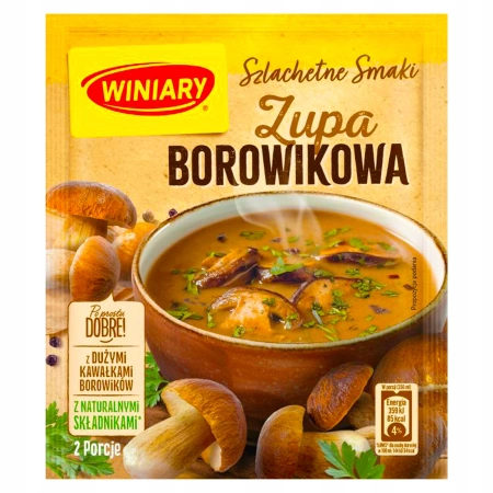 Marka Winiary od lat kojarzona jest z produktami najwyższej jakości, które ułatwiają gotowanie i gwarantują doskonały smak. Zupa borowikowa z linii Szlachetne Smaki to kontynuacja tej tradycji – połączenie klasycznej receptury z nowoczesną wygodą.