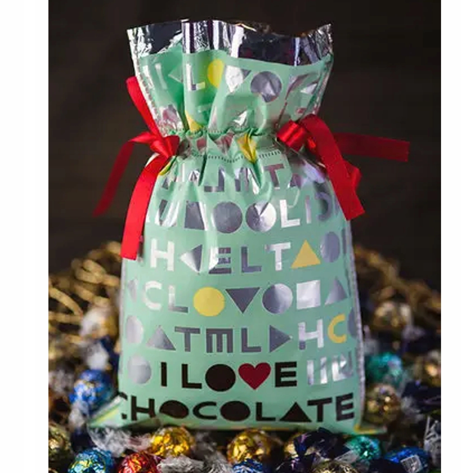 Worek prezentowy i love chocolate Miętowy kolor 20x30 cm