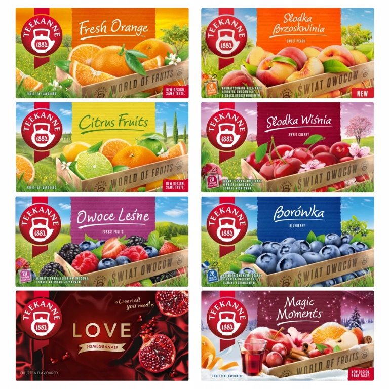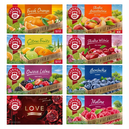 Zanurz się w owocowym świecie smaku i aromatu dzięki wyjątkowej kolekcji herbat owocowych od marki Teekanne. Ten bogaty zestaw składa się z 8 unikalnych kompozycji smakowych, które doskonale sprawdzą się o każdej porze dnia – od poranka aż po wieczorne chwile relaksu.
