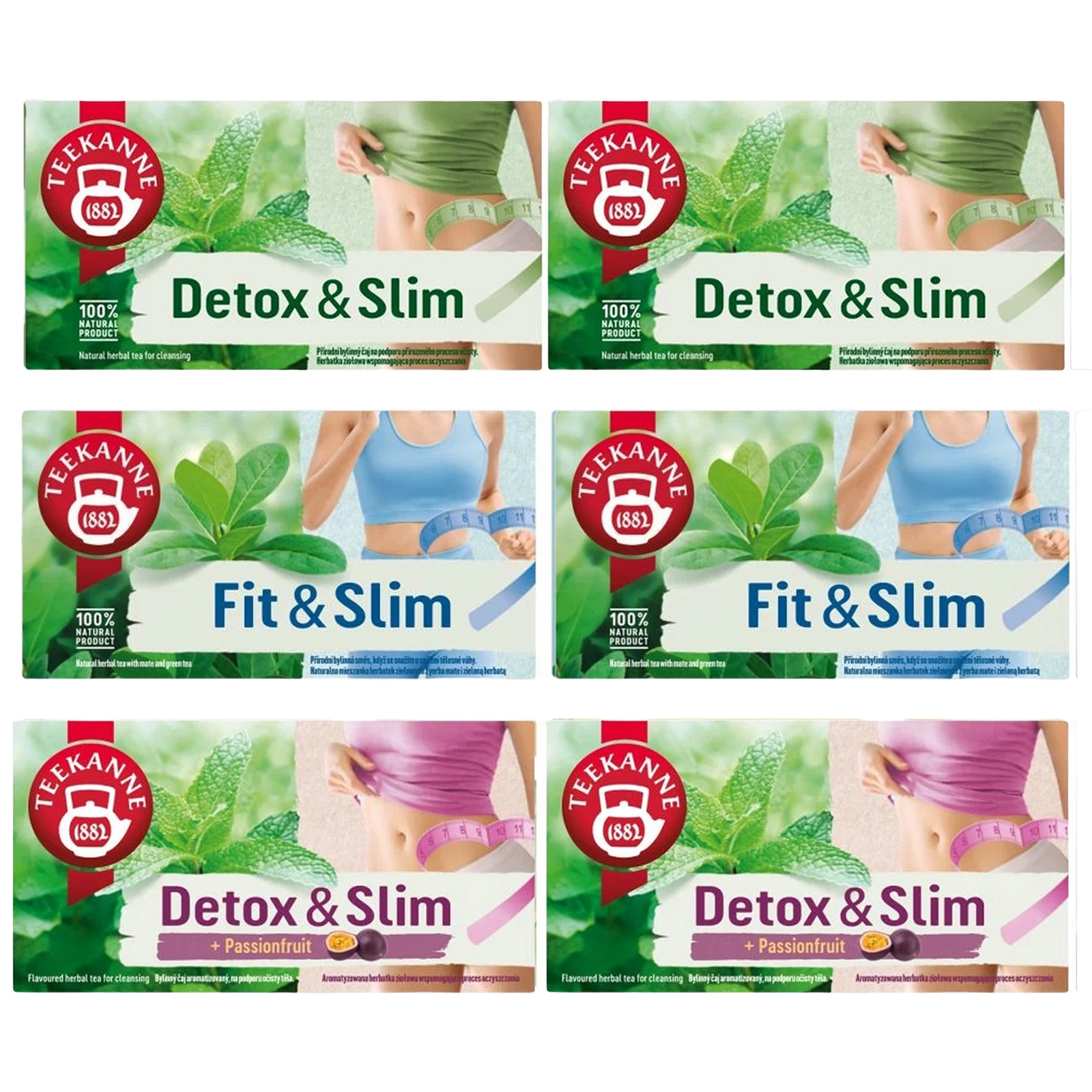 Detox&Slim+Passionfruit – pokrzywa (47%), mięta zielona (27%), herbata zielona (11%), mięta pieprzowa, owoc dzikiej róży, aromat marakui, granulat owocu marakui (1%)