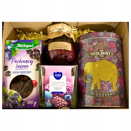 Zestaw prezentowy z herbatami, świeczką i cytrynkami w syropie to kompozycja, która łączy w sobie smak, aromat i estetykę w idealnych proporcjach. Stworzony z myślą o osobach, które kochają przytulną atmosferę, naturalne produkty i chwile relaksu. To upominek, który nie tylko zachwyca wyglądem, ale przede wszystkim pozwala obdarowanemu cieszyć się wyjątkowymi doznaniami – od zapachu jagodowej świecy, przez głęboki smak herbaty, po orzeźwiające cytrynki z hibiskusem. Każdy element zestawu został starannie dobrany, by tworzyć spójną, harmonijną całość.