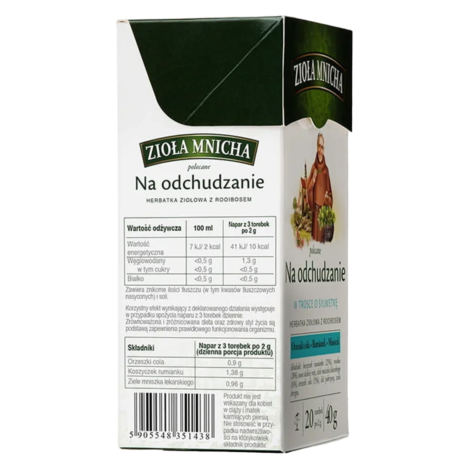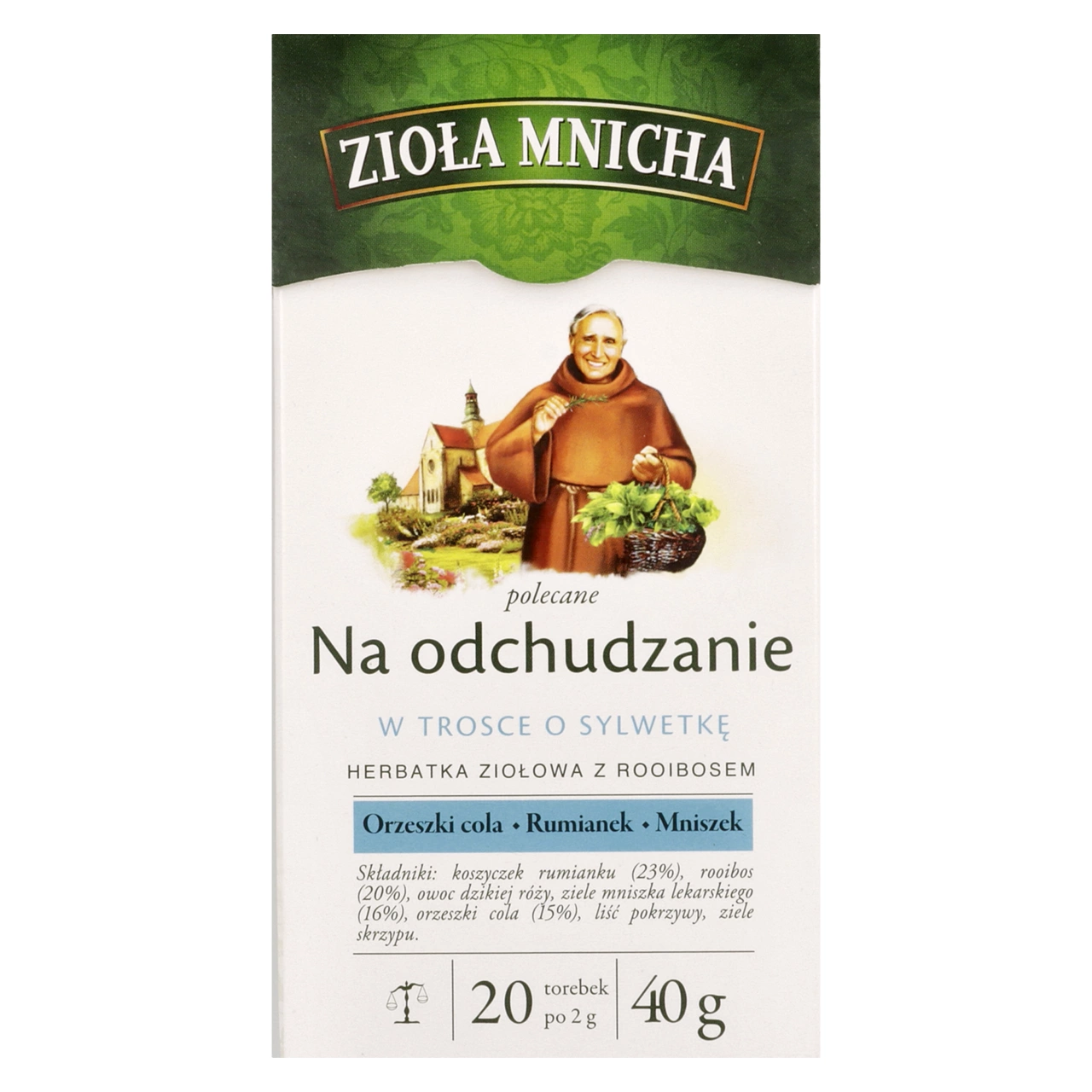 Zioła Mnicha na odchudzanie składają się wyłącznie z naturalnych składników, takich jak rooibos, mniszek lekarski, orzeszki cola, pokrzywa i wiele innych. To gwarancja, że każda filiżanka jest pełna zdrowia, bez sztucznych dodatków.