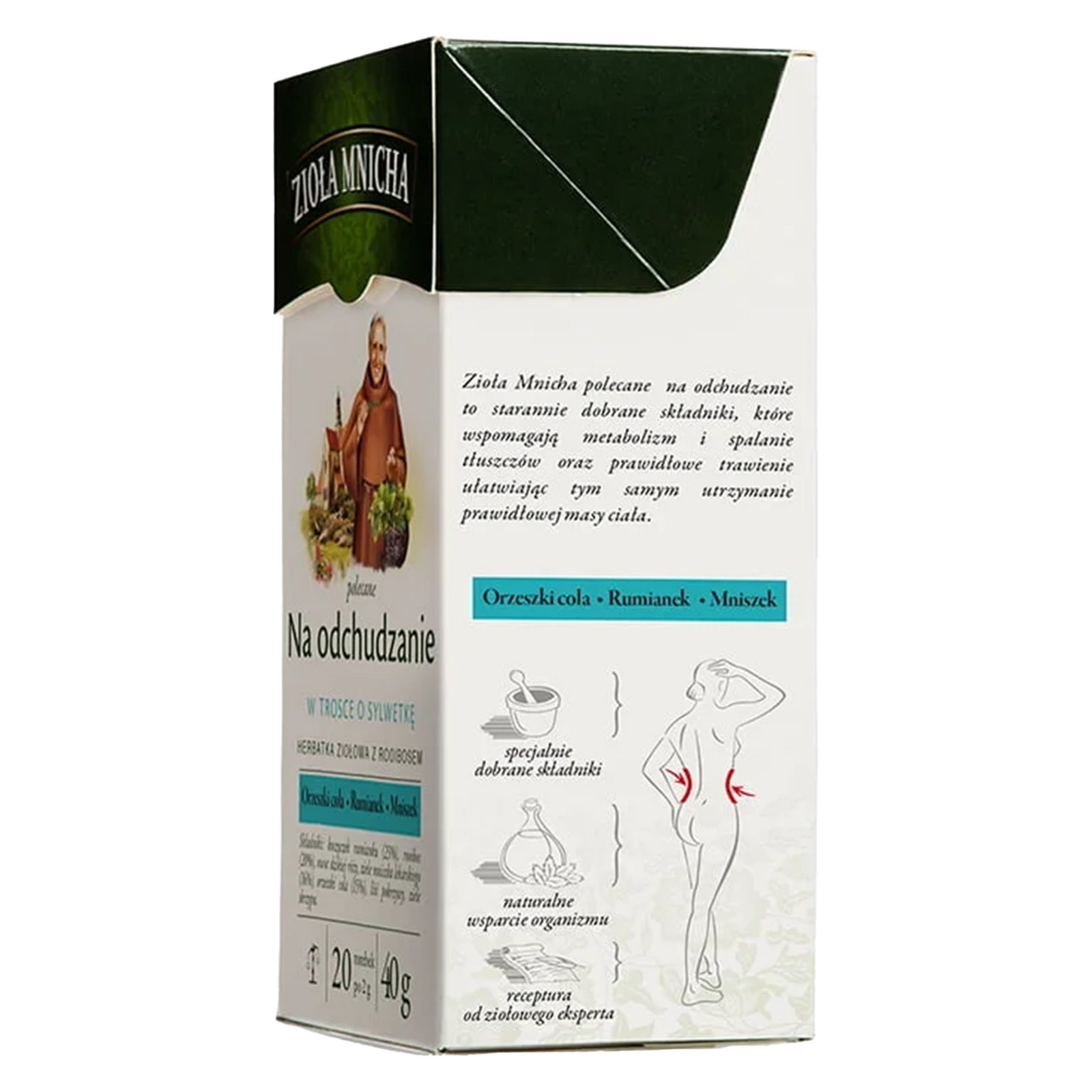 Składniki w Zioła Mnicha na odchudzanie wspomagają poprawę trawienia, co może przyczynić się do lepszego wchłaniania składników odżywczych i efektywnego spalania kalorii.